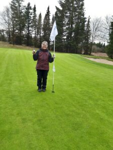 Tirsdag den 14. april startede Hanne Østergaard sin golfrunde i voldsom regnvejr, men heldigvis stoppede regnen og på hul 17 slog hun det helt perfekte slag og lavede Hole in One.