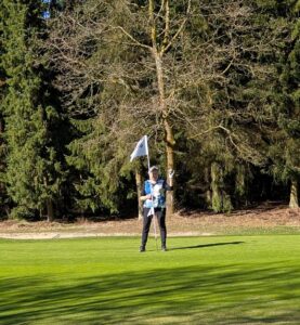 STORT tillykke til Vibeke, som for det flotte slag, modtog en flaske whisky, som er sponsoreret af Trehøje Golfcafé.