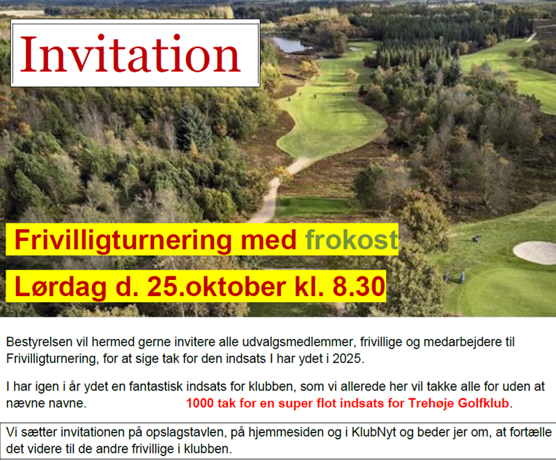Bestyrelsen vil gerne takke alle frivillige kræfter i klubben til efterårets frivilligturnering den 25. oktober 2025.